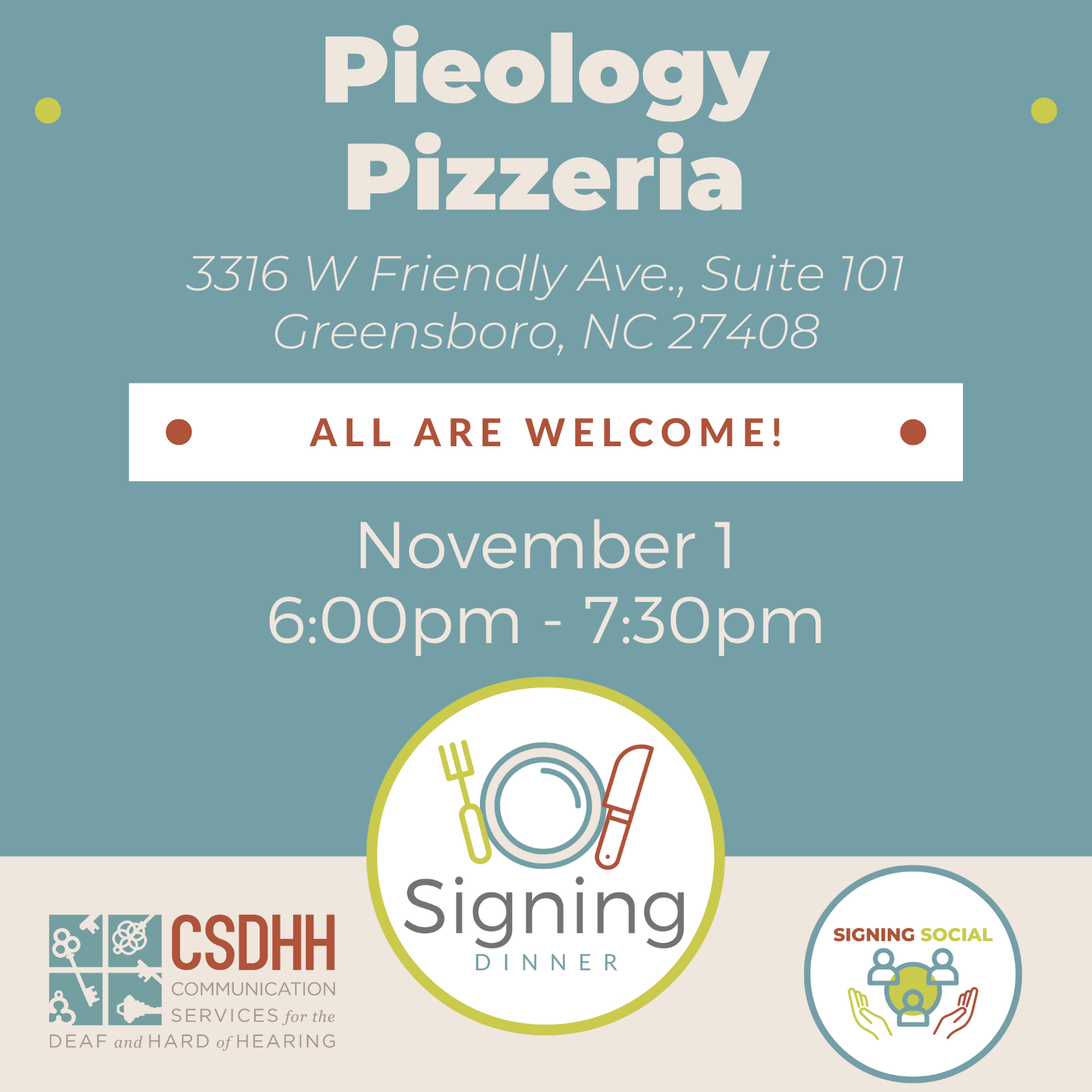 Our November Signing Dinner will be at Pieology Pizzeria in Friendly Center, on November 1 at 6:00pm.