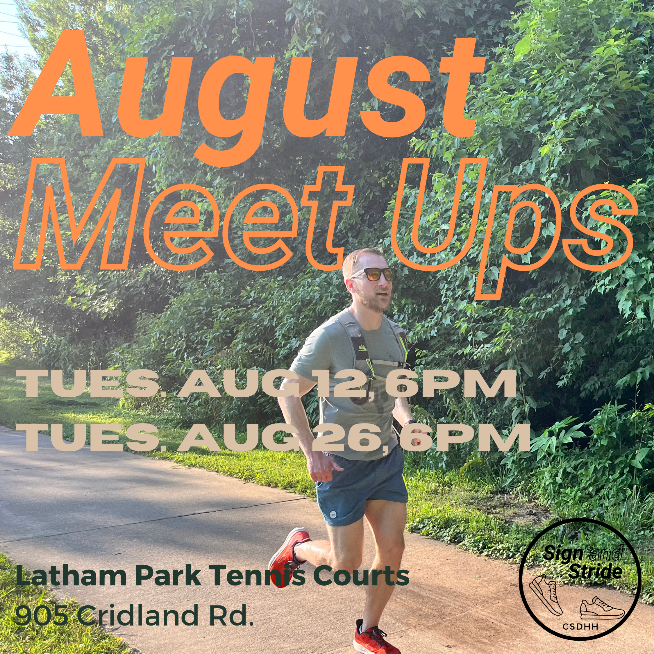 Sign and Stride is an ASL walk/run club that meets every other Tuesday. Run or walk, all paces, any distance. ASL is the language of the event. Join us to get outside, get moving, & make new friends—all while using ASL.