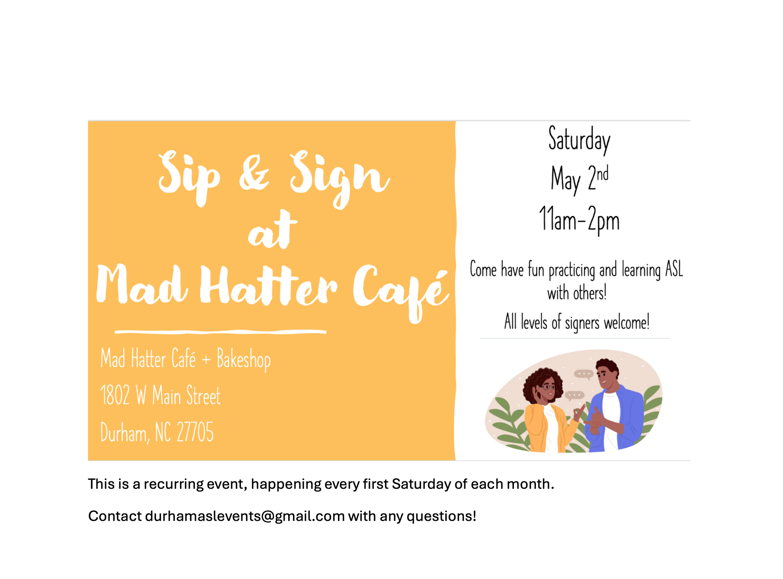 Please email durhamaslevents@gmail.com with any questions.